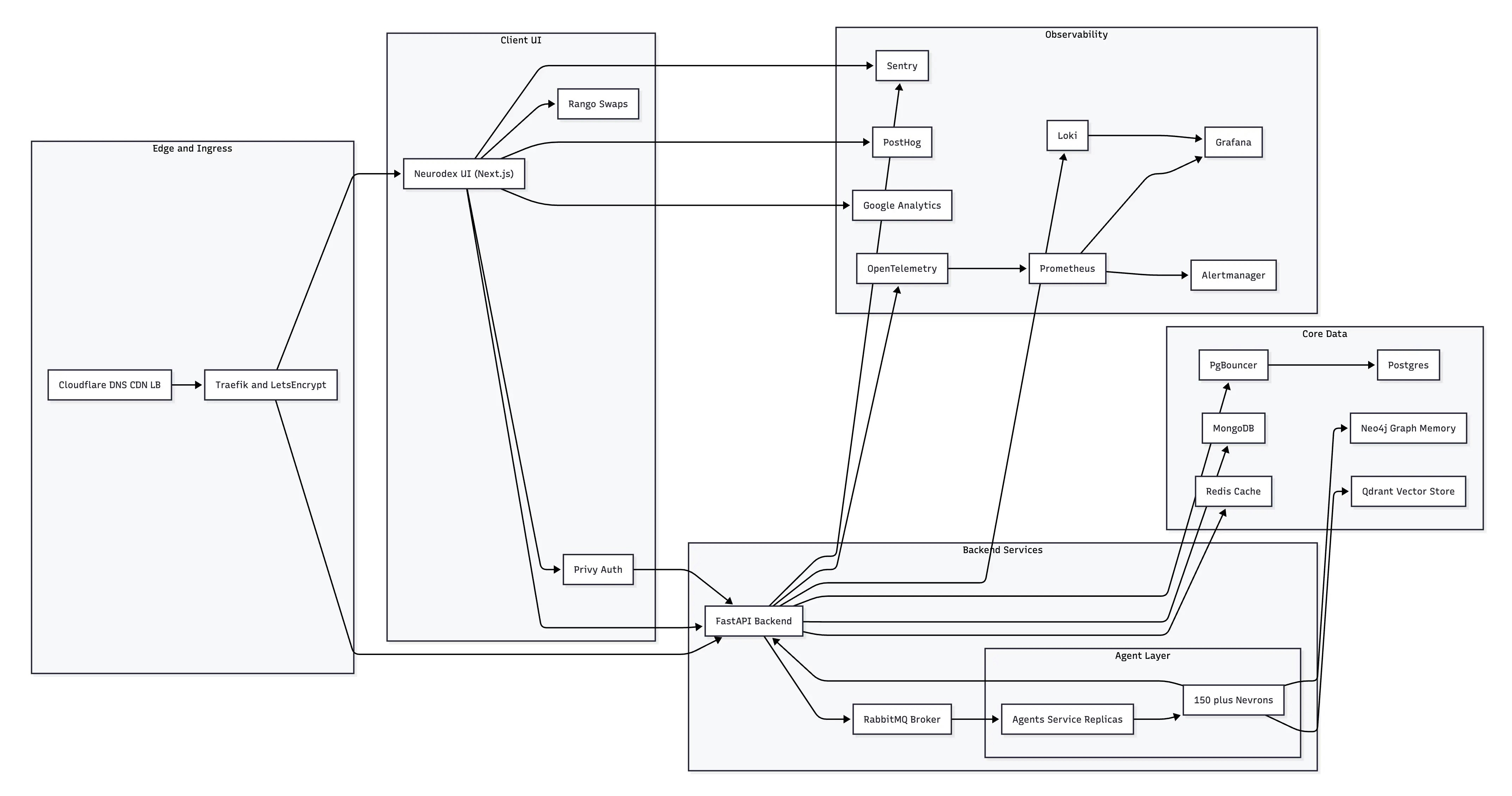 At Neurobro, we aim to build the new standard for AI information in crypto. This goal comes hand in hand with the excellence of the platform and implementation of real tech.Platform Microservices Architecture